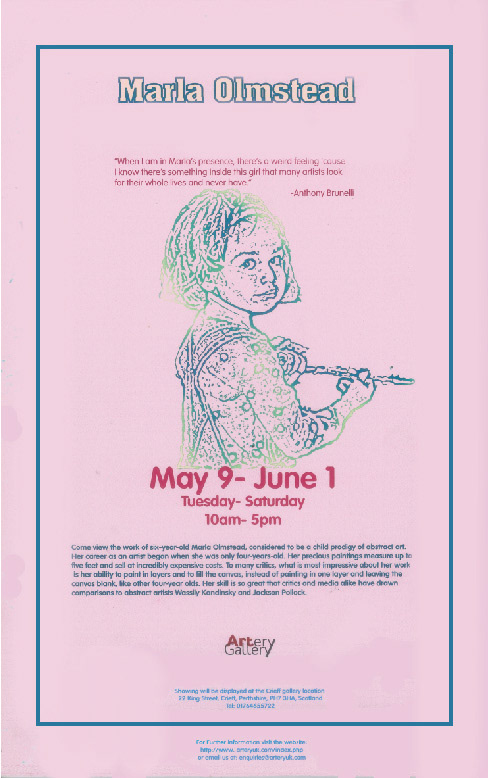 Sample Gallery posters promoting an artist. Although the selected galleries are different the look and style of the posters are consistent.
